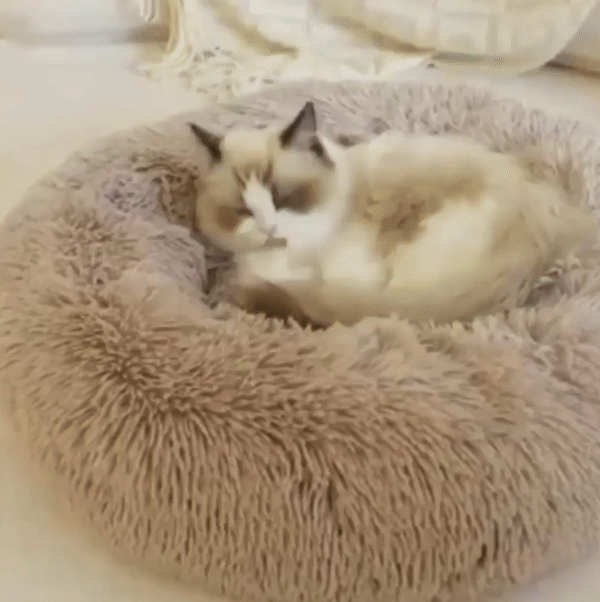 The round shape of the Home Plush Pet Nest creates a snug and secure environment, mimicking the feeling of being cuddled, which helps pets feel safe and relaxed. This shape naturally supports a pet's curled-up sleeping position, providing optimal comfort. It's an ideal resting spot that enhances your pet’s sense of security and comfort.