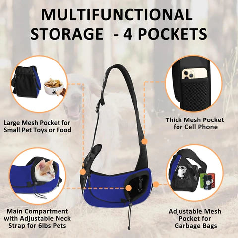 The sling shoulder pet bag features multiple convenient pockets, providing ample space for storing essentials like treats, waste bags, and personal items. These pockets help keep everything organized and easily accessible, ensuring you have everything you need for your pet while on the go. This added convenience enhances the practicality of the bag, making it a smart choice for travel and outings..